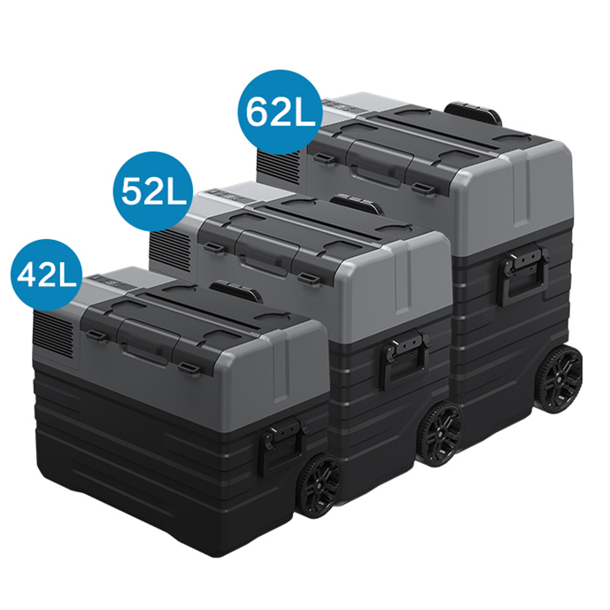 Desde 15 hasta 50 litros con o sin ruedas y manijas, con una o dos zonas de frio, pero todas permiten controlar la temperatura hasta -20°C en su display digital, con muy bajo consumo, alta eficiencia y toda la portabilidad.