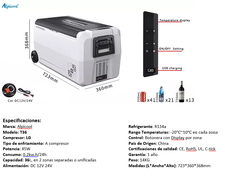 Alpicool T36 (36 Litros de capacidad útil)